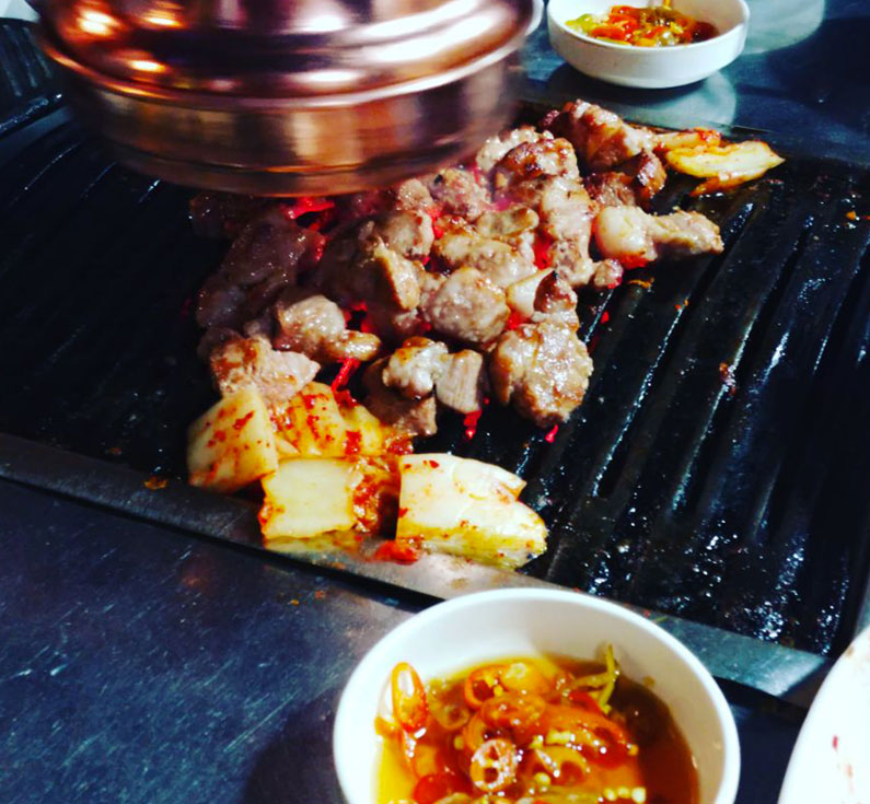 왼손엔 은은하게 베인 연탄불 향에 살짝 탄 듯한 소시가 발린 등갈비!