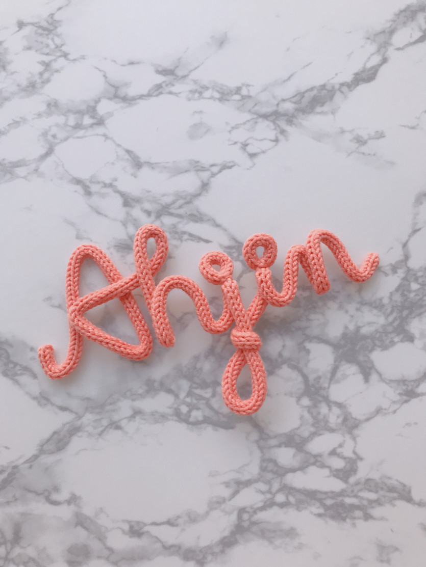 아기 백일상 소품으로 제작했던 니트레터링. 인테리어소품, 파티소품, 촬영소품 등등 다양하게 활용가능하다. 밋밋한 벽에 포인트 주기에 딱이다.