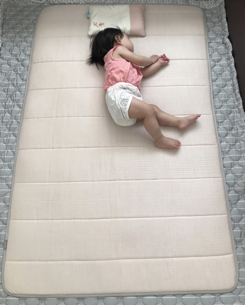 기초체온이 높은 아기들은 잘때마다 땀을 한바가지씩 흘린다. 조금이라도 시원하라고 쿨매트를 깔아줬다. 아이슬러라는 신소재라는데 확실히 면패트보다는 촉감이 시원하다.