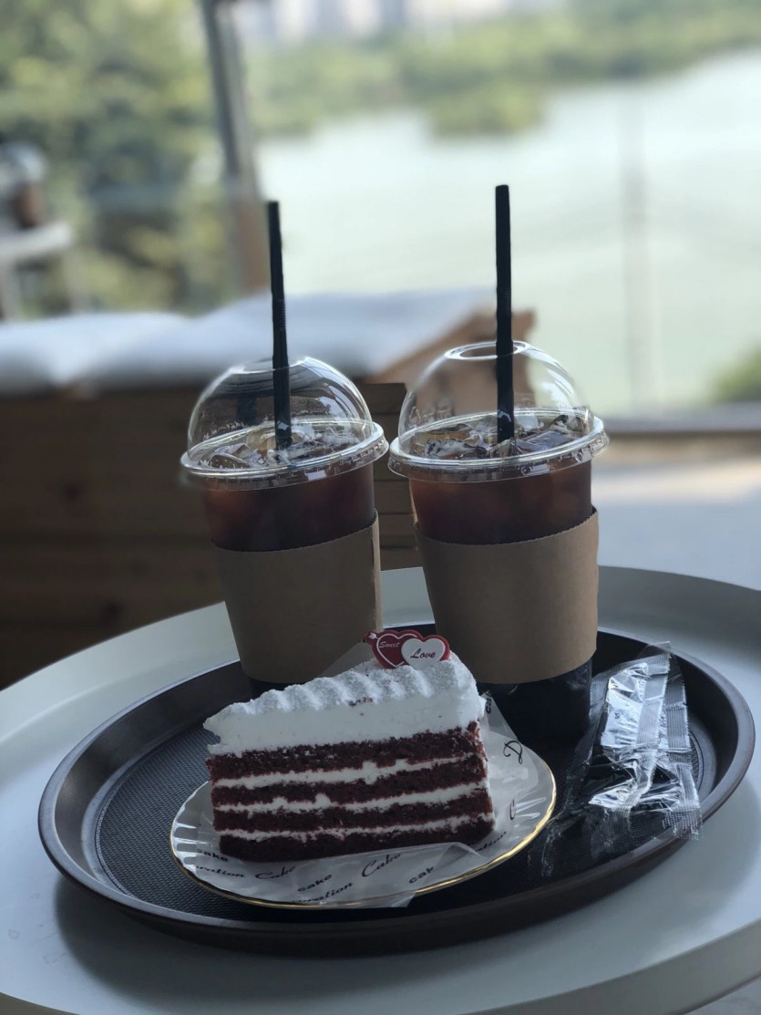 한강 뷰를 보면서 마시는 인생의 쓴맛(아아) 그리고 여러 종류의 케익!!